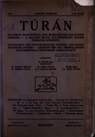 | Additional Information: | Turán. A Turáni Társaság folyóirata 3. (1918) |
