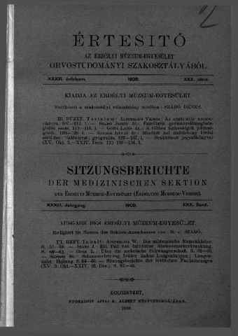 Értesítő az Erdélyi Múzeum-Egyesület Orvostudományi Szakosztályából, 33 (3) - 1908.
