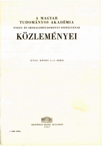 | Additional Information: | A Magyar Tudományos Akadémia Nyelv- és Irodalomtudományi Osztályának közleményei, 18. kötet, 1-4. szám |