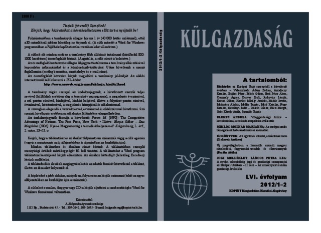 Külgazdaság, 56 (1-12) - 2012. ISSN 0324-4202
