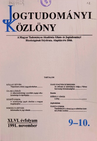 Jogtudományi Közlöny, 46 (1-12) - 1991. ISSN 0021-7166