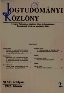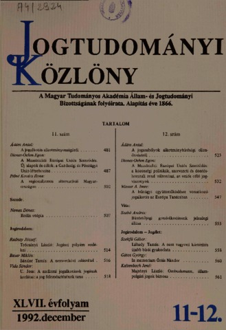 Jogtudományi Közlöny, 47 (1-12) - 1992. ISSN 0021-7166