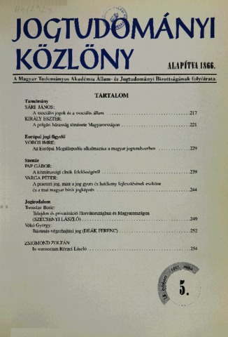 Jogtudományi Közlöny, 52 (1-12) - 1997. ISSN 0021-7166