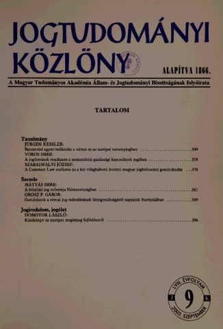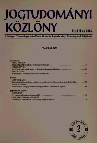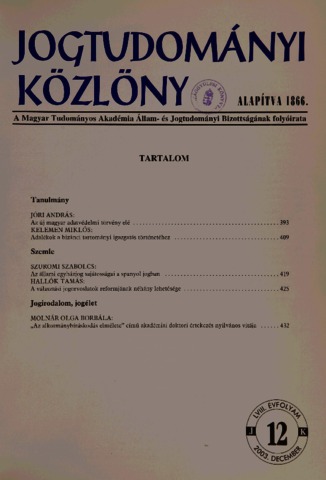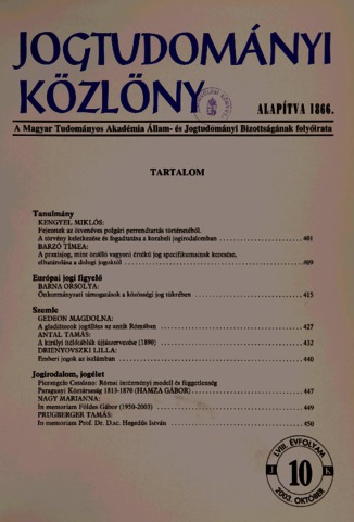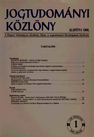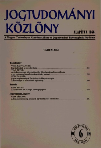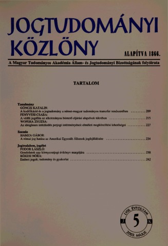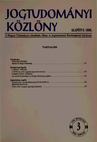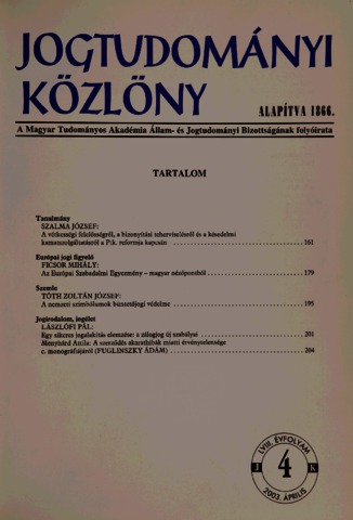 Jogtudományi Közlöny, 58 (1-12) - 2003. ISSN 0021-7166