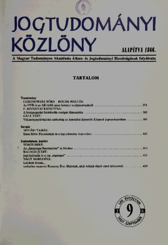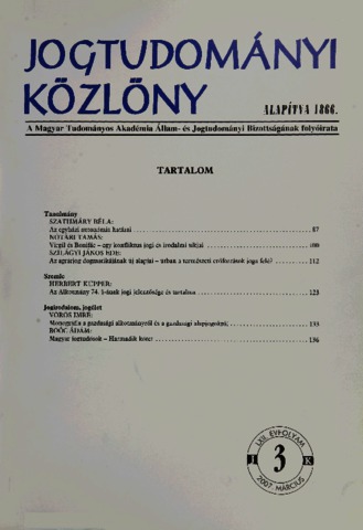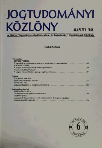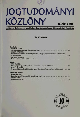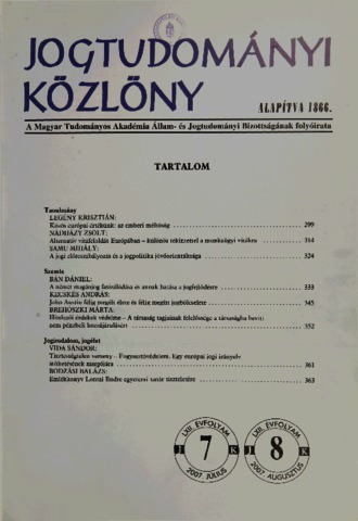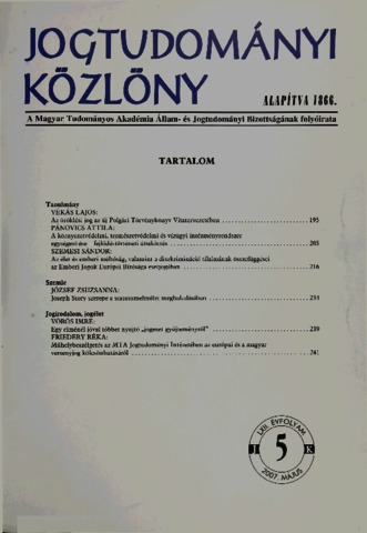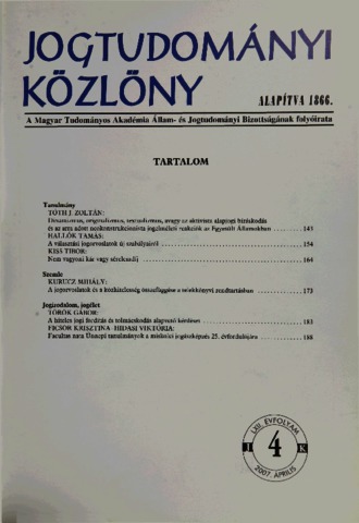Jogtudományi Közlöny, 62 (1-12) - 2007. ISSN 0021-7166
