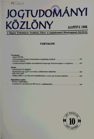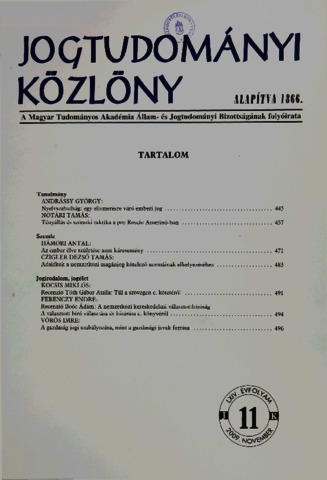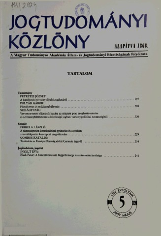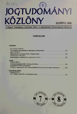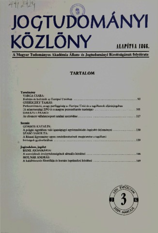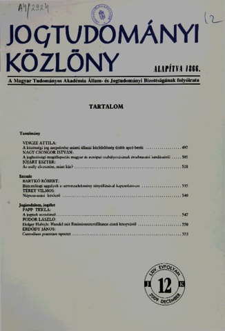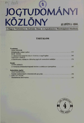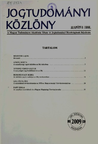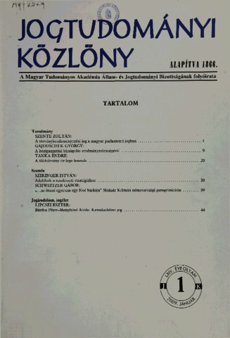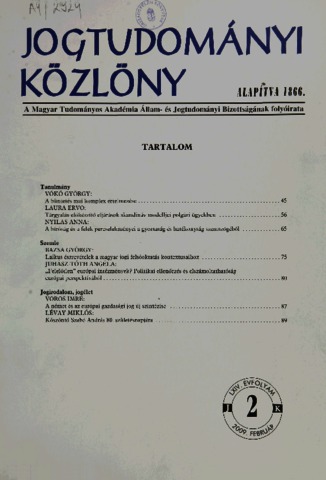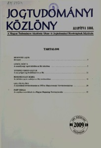 Jogtudományi Közlöny, 64 (1-12) - 2009. ISSN 0021-7166