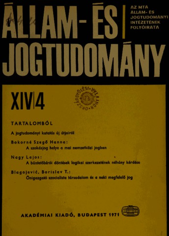 Állam- és Jogtudomány, XIV (1-4) - 1971. ISSN 0002-564X