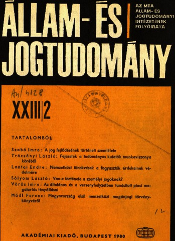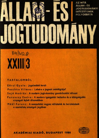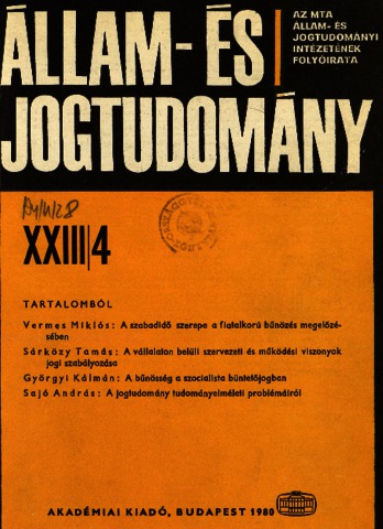 Állam- és Jogtudomány, XXIII (1-4) - 1980. ISSN 0002-564X