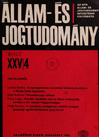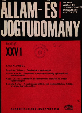 Állam- és Jogtudomány, XXV (1-4) - 1982. ISSN 0002-564X