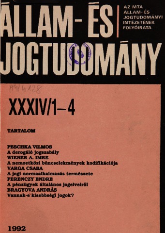 Állam- és Jogtudomány, XXXIV (1-4) - 1992. ISSN 0002-564X