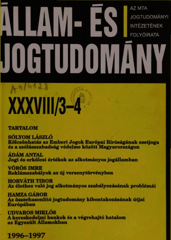 Állam- és Jogtudomány, XXXVII (1-4) - 1996. ISSN 0002-564X