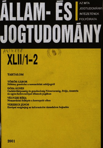 Állam- és Jogtudomány, XLII (1-4) - 2001. ISSN 0002-564X