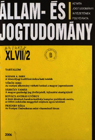 Állam- és Jogtudomány, XLVII (1-4) - 2006. ISSN 0002-564X