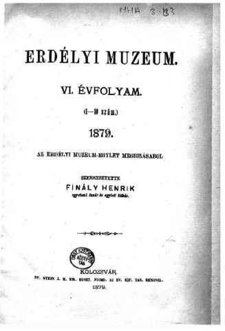 | Publisher: | Erdélyi Múzeum-egyesület |