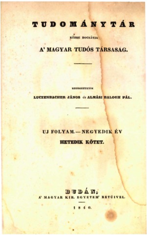 | Additional Information: | Tudománytár 1840. Értekezések 7. kötet |