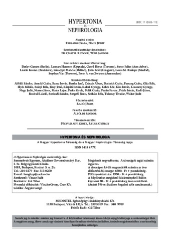 Hypertonia és Nephrologia, 11 (1-6) - 2007. ISSN 1418 477X