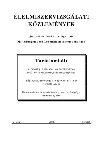 Élelmiszervizsgálati Közlemények, 50 (1-4) - 2004. ISSN 0422-9576