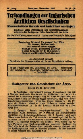 Verhandlungen der ungarischen ärztlichen Gesellschaften, 4 (1-20) - 1932.