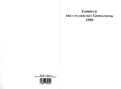 Jahrbuch der ungarischen Germanistik, '99 - 1999. ISSN 1217-0216