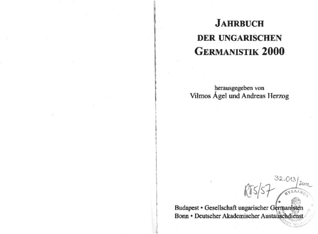 Jahrbuch der ungarischen Germanistik, '00 - 2000. ISSN 1217-0216