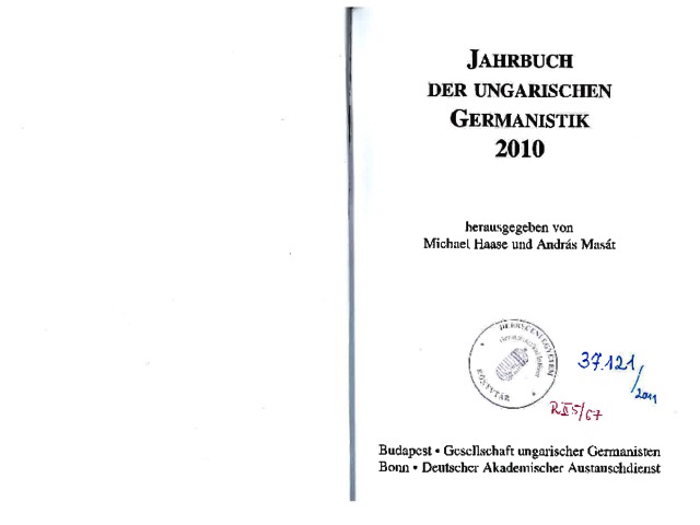 Jahrbuch der ungarischen Germanistik, '10 - 2010. ISSN 1217-0216