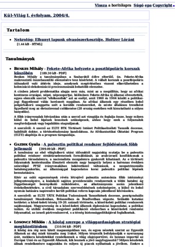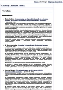 Kül-világ, 1 (1-4) - 2004. ISSN 1785-5284