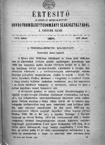 | Additional Information: | Értesítő az Erdélyi Múzeum-Egylet Orvos-Természettudományi Szakosztályából I. Orvosi Szak |