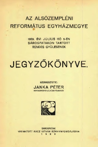 | Additional Information: | Az Alsózempléni Református Egyházmegye 1939. évi július hó 5-én Sárospatakon tartott rendes gyűlésének jegyzőkönyve | Forrás: Sárospataki Református Kollégium Tudományos Gyűjteményei |