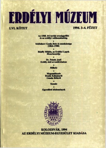 Erdélyi múzeum, 56 (1-4) - 1994. ISSN 1453-0961