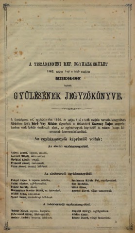 | Additional Information: | A Tiszáninneni Ref. Egyházkerület 1866. május 1-ső s több napjain Miskolcon tartott gyűlésének jegyzőkönyve| Forrás: Sárospataki Református Kollégium Tudományos Gyűjteményei |