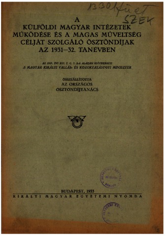 | Additional Information: | A külföldi magyar intézetek megalapítása és 1931/32 tanévi működése |