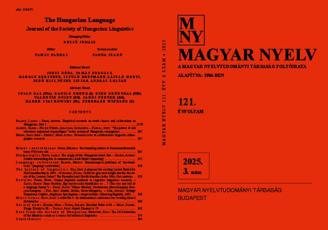 Magyar Nyelv, 121 (1-3) - 2025. ISSN 0025-0228 (print), 1588-1210 (online)