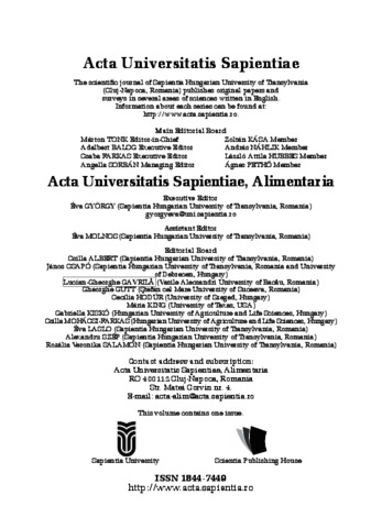 Acta Universitatis Sapientiae - Alimentaria, 17 - 2024. ISSN 1844-7449 | 2066-7744 (online version) | ISSN-L 1844-7449