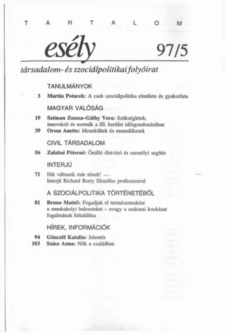 Esély : Társadalom és szociálpolitikai folyóirat, '97 (1-6) - 1997. ISSN 0865-0810