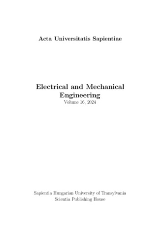 Acta Universitatis Sapientiae - Electrical and Mechanical Engineering, 16 - 2024. ISSN 2065-5916 | 2066-8910 (online version) | ISSN-L 2065-5916