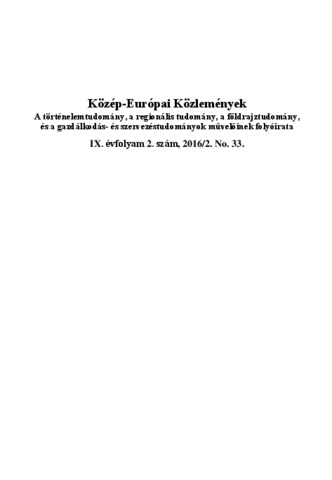 | Additional Information: | A történelemtudomány, a regionális tudomány, a földrajztudomány és a gazdálkodás- és szervezéstudományok művelőinek referált folyóirata |