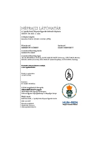Néprajzi Látóhatár, 34 (1-2) - 2025. ISSN 1215-8097