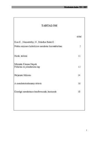 Membrántechnika XI/1 2007 Membrántechnika XI/2 2007 Membrántechnika XI/3-4 2007