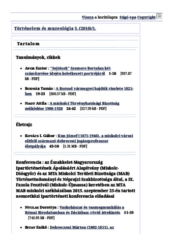 Történelem és muzeológia, 3 (1-2) - 2016. ISSN 2064-7530