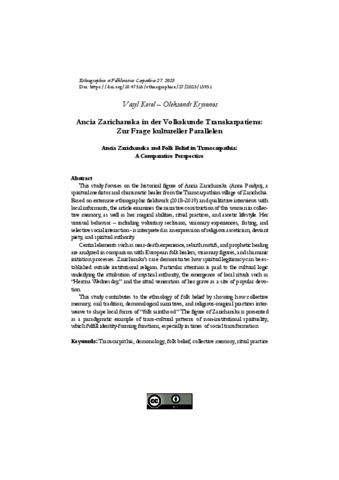 Ethnographica et Folkloristica Carpathica, 27- - 2025. ISSN 0139–0600