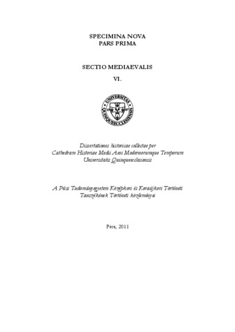 | Publisher: | Pécsi Tudományegyetem BTK Középkori és Koraújkori Történeti Tanszék |