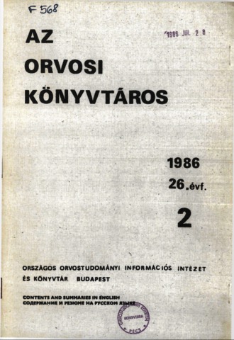 Az orvosi könyvtáros, 26 (1-4) - 1986. ISSN 0030-6010
