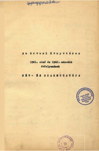 Az Orvosi Könyvtáros 1961. első és 1962. második évfolyamának Név- és szakmutatója