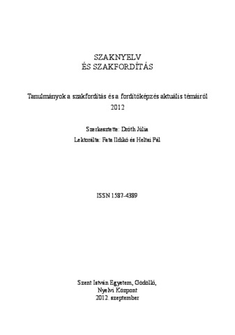 Szaknyelv és Szakfordítás, 2012 - 2012. ISSN 1587-4389