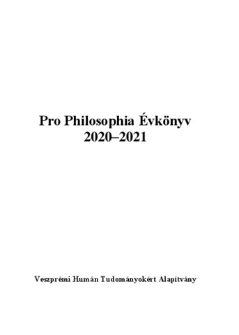 Pro Philosophia Évkönyv, '20-21 - 2021. ISSN 2060-100X