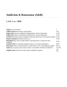 Antikvitás & Reneszánsz, 2018 (1-2) - 2018. ISSN 2677-0903