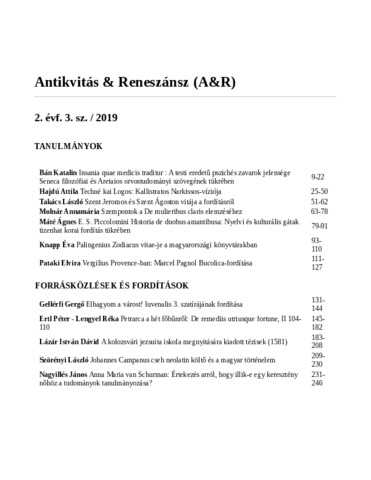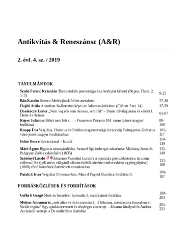Antikvitás & Reneszánsz, 2019 (3-4) - 2019. ISSN 2677-0903