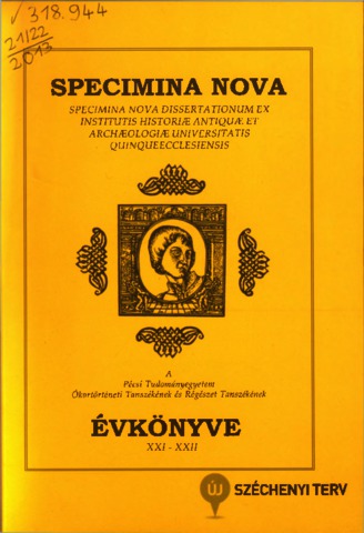 Specimina Nova Dissertationum ex Institutis Historiae Antiquae et Archeologiae Universitatis Quinqueecclesiensis (21-22) - 2013. ISSN 0238-4078