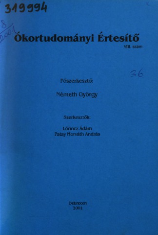 Ókortudományi Értesítő (7-8) - 2001. ISSN 1417-8532