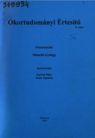 | Publisher: | Debrecen KLTE Ókortörténeti Tanszék |